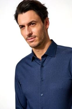 Dit overhemd van Desoto is trendy, functioneel en geeft je outfit een moderne uitstraling. Het overhemd heeft een slim-fit pasvorm en valt getailleerd om je lichaam. Daarnaast is het herenshirt volledig strijkvrij, heeft het een hoge rekbaarheid en draagcomfort. De stoffen die Desoto voor zijn herenoverhemden gebruikt zijn Oeko-Tex gecertificeerd.