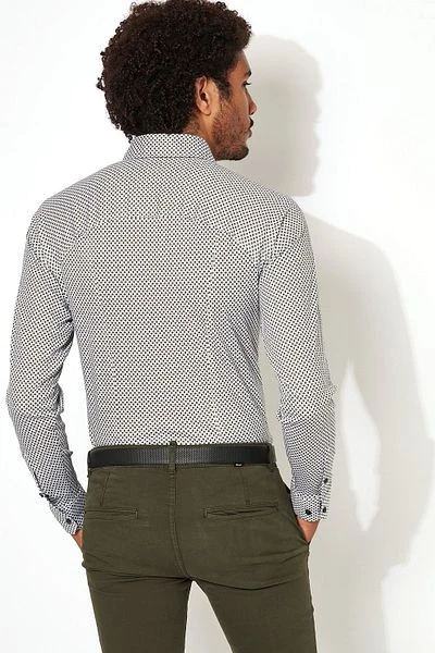 Dit overhemd van Desoto is trendy, functioneel en geeft je outfit een moderne uitstraling. Het witte overhemd heeft een trendy all-over grafische print in een Taupe kleur. Dit shirt is voorzien van lange mouwen met een enkele manchet. Daarnaast is er een 1-knoops, kent boord. Nog een bijkomend voordeel: dit herenshirt is volledig strijkvrij. Hang het overhemd na het wassen op om te drogen, en de volgende dag kun je hem meteen aan!
