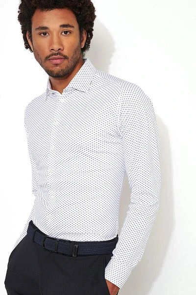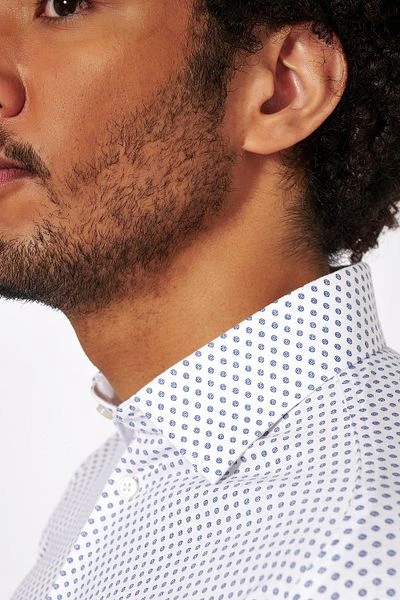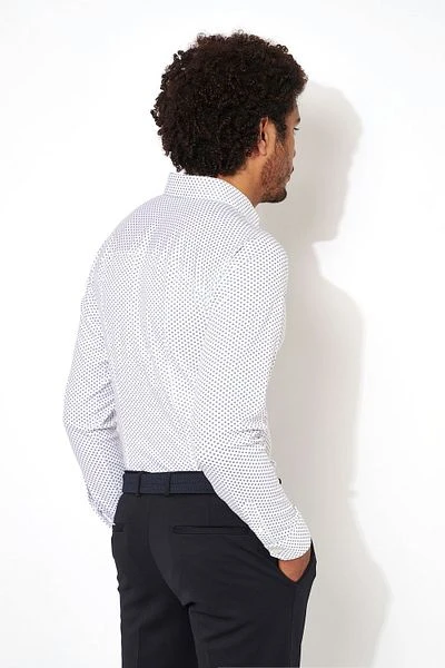 Dit overhemd van Desoto is trendy, functioneel en geeft je outfit een moderne uitstraling. Het witte overhemd heeft een trendy all-over grafische print in een blauwe kleur. Dit shirt is voorzien van lange mouwen met een enkele manchet. Daarnaast is er een 1-knoops, kent boord. Nog een bijkomend voordeel: dit herenshirt is volledig strijkvrij. Hang het overhemd na het wassen op om te drogen, en de volgende dag kun je hem meteen aan!
