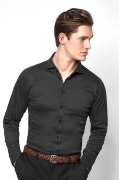 Dit grijze overhemd van het trendy merk Desoto is een musthave voor elke fashionable man. De overhemden van Desoto bieden namelijk niet alleen een extra hoog draagcomfort, ze zijn ook voorzien van luxe details en een mooie afwerking. Doordat dit herenoverhemd gemaakt is van 100% jersey katoen biedt dit shirt extra rekbaarheid en meer bewegingsruimte. De jersey katoen is bovendien op een hoogwaardige manier gebreid en de stoffen zijn Oeko-Tex gecertificeerd.