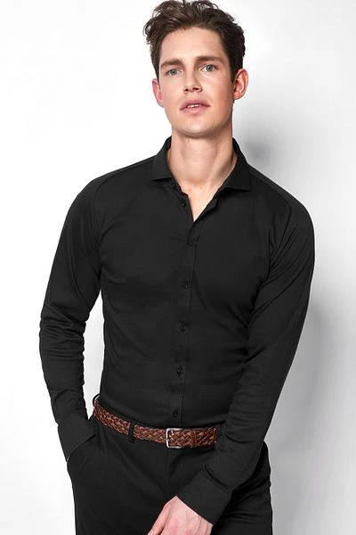 Dit zwarte overhemd van het trendy merk Desoto is een musthave voor elke fashionable man. De overhemden van Desoto bieden namelijk niet alleen een extra hoog draagcomfort, ze zijn ook voorzien van luxe details en een mooie afwerking. Doordat dit herenoverhemd gemaakt is van 100% jersey katoen biedt dit shirt extra rekbaarheid en meer bewegingsruimte. Het jersey katoen is bovendien op een hoogwaardige manier gebreid en de stoffen zijn Oeko-Tex gecertificeerd.