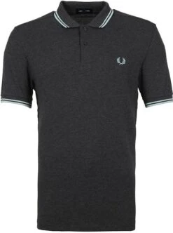 Met dit Twin Tipped poloshirt van Fred Perry haal je een moderne en stijlvolle herenpolo in huis. De polo heeft een goed te combineren grijze ‘antraciet’ kleur gecombineerd met lichtblauwe details zoals de herkenbare lauwerkrans op de borst en de strepen op de mouwen en boord. Door deze modieuze details krijgt de polo met klassieke pique binding een traditionele uitstraling en voorziet deze jouw outfit van een sportieve touch.