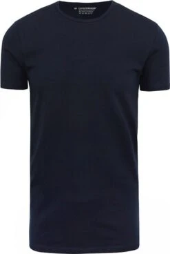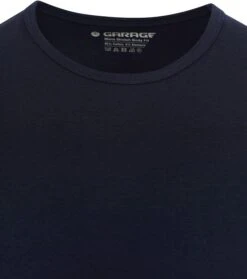 Met dit Stretch T-shirt van Garage haal je een goede basis van je outfit in huis. Het basic shirt heeft een donkerblauwe kleur met subtiel melange dessin en is voorzien van een ronde hals. Ideaal om te gebruiken als ondershirt in combinatie met een overhemd, pullover, cardigan of blazer.