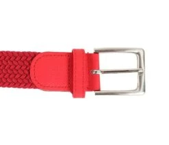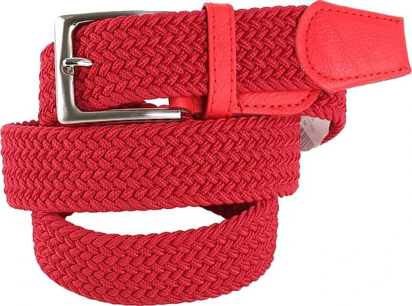 Deze elastische riem met geweven patroon is aan de uiteinde voorzien van een leren stukje. De gesp is zilver gekleurd en heeft een vierkante vorm met mooie rondingen. De breedte van deze riem is 3,5 cm.