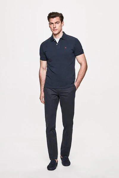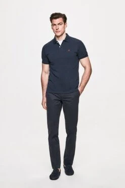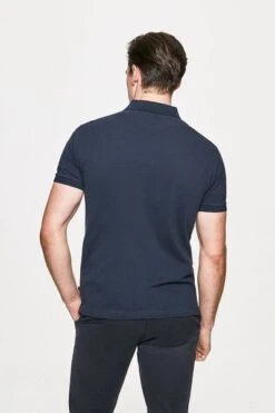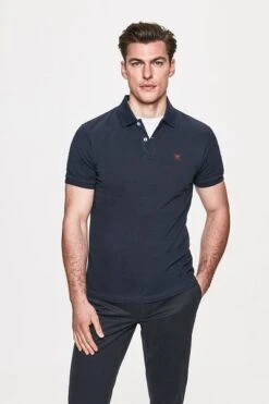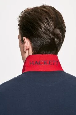 Het Britse kledingmerk Hackett London beschikt over een modieuze collectie met chique polo’s, trendy overhemden en moderne truien voor elke garderobe. Met deze ‘essential’ polo geef jij jouw outfit de stijlvolle Hackett look. Het poloshirt heeft een moderne donkerblauwe ‘navy’ kleur en is afgewerkt met een knoopsluiting, een stijlvol pique structuur en een geborduurd logo op de borst. Tevens is de achterzijde van de kraag voorzien van een groot Hackett merklogo, wat de polo een moderne uitstraling geeft.