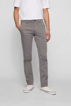 De collectie van Hugo Boss staat bekend om zijn hoogwaardige kwaliteit, nauwkeurige designs en vakmanschap in elk product. Deze Chino broek is hier een perfect voorbeeld van. De herenbroek heeft een modieuze grijze kleur en is voorzien van twee steekzakken aan de voorzijde, ritssluiting en achterzakken.