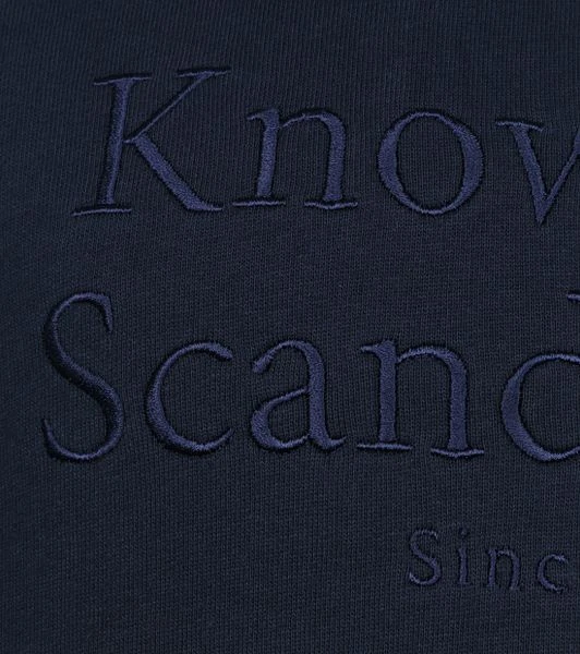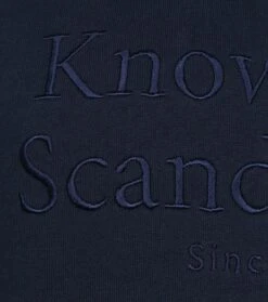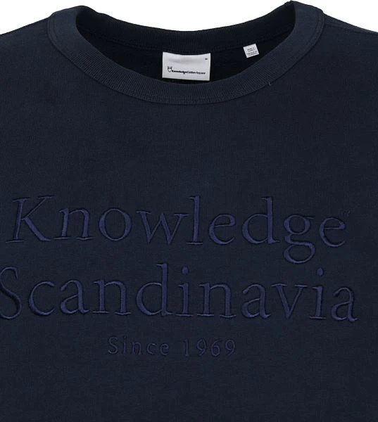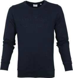 Kom op elke casual gelegenheid stijlvol voor de dag met deze Elm trui van Knowledge Cotton Apparel. De pullover heeft een modische donkerblauwe ‘navy’ kleur met de geborduurde tekst ‘Knowledge Scandinavia’ op de borst. Daarnaast heeft de trui een ronde hals en elastieken banden aan de onderzijde en mouwen.