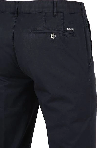 De broeken van Meyer staan bekend om hun uitstekende kwaliteit en hun moderne pasvorm, zo ook deze Bonn chino. De herenbroek heeft een stijlvolle donkerblauwe kleur en is voorzien van twee steekzakken aan de voorzijde, twee paspelzakken aan de achterzijde en een ritssluiting.