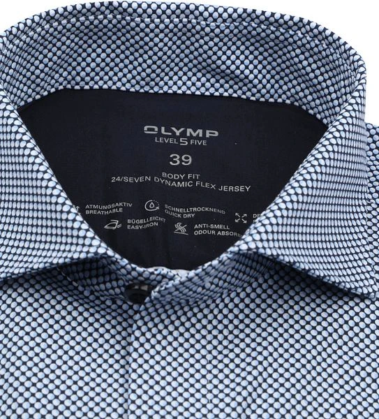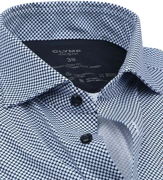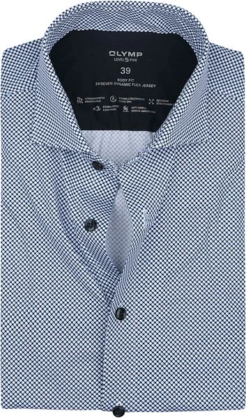 Dit overhemd van Olymp is afkomstig uit de Level 5 collectie. Deze collectie overhemden staat bekend om de strakke, body-fit pasvorm die getailleerd langs het lichaam valt. Het overhemd biedt je meer bewegingsvrijheid doordat er stretch in verwerkt zit. Daarnaast krijgt het shirt een interessante look door het subtiele patroon.