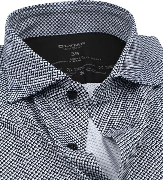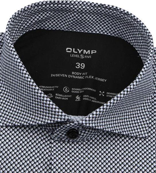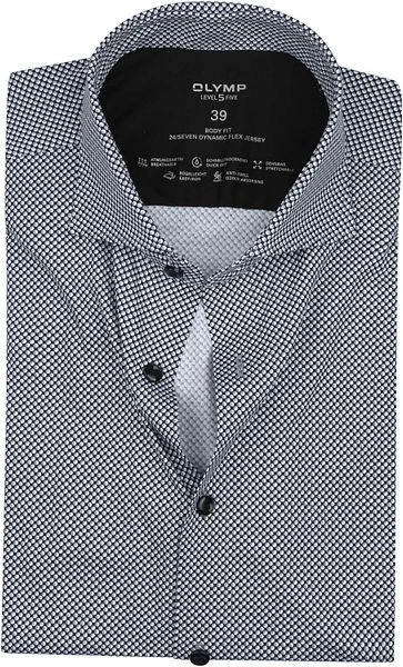 Dit overhemd van Olymp is afkomstig uit de Level 5 collectie. Deze collectie overhemden staat bekend om de strakke, body-fit pasvorm die getailleerd langs het lichaam valt. Het overhemd biedt je meer bewegingsvrijheid doordat er stretch in verwerkt zit. Daarnaast krijgt het shirt een interessante look door het subtiele patroon.