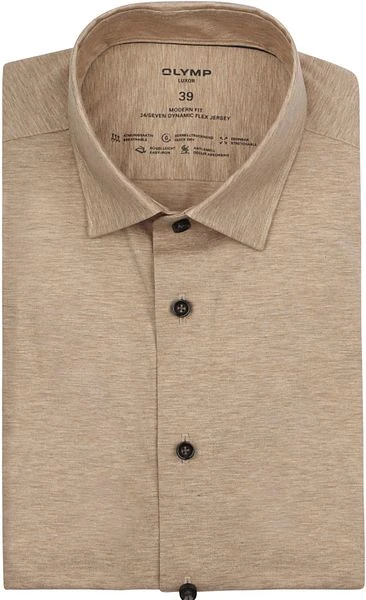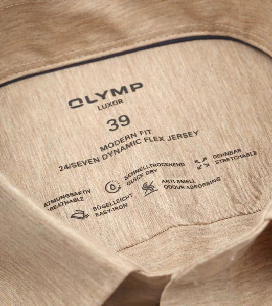 Het OLYMP 24/Seven Shirt is net zo comfortabel als een t-shirt, en net zo stijlvol als een overhemd. Het modische shirt heeft een licht getailleerde pasvorm en is gemaakt van een zachte, elastische en vormbestendige jersey binding. Daarnaast is het shirt voorzien van een kent boord, enkele manchetten en bijpassende donkergekleurde knopen. Dit Luxor overhemd valt onder het Green Choice label, wat betekent dat het product duurzaam en verantwoord is geproduceerd en het Oeko-Tex en BCI-certificaat bevat.