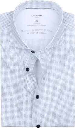 Met dit Olymp shirt kom je altijd goed voor de dag op elke gelegenheid. Dit shirt van Olymp heeft een Modern Fit pasvorm en valt licht getailleerd om je lichaam. Dit shirt is gemaakt van katoen, waardoor het een ademend, slijtvast en zacht overhemd is. Daarnaast is het sneldrogend, bevat het stretch, is het makkelijk te strijken en is het geur absorberend. Het overhemd is zowel formeel als informeel te dragen.