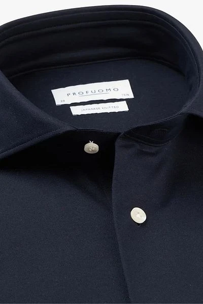 Dit overhemd, voormalig Sky Blue model, van Profuomo voorziet jou dit seizoen van een stijlvolle uitstraling met enkele moderne details. Het herenshirt heeft een effen dessin in een stijlvolle donkerblauwe kleur. Zijn moderne look krijgt het overhemd door zijn cutaway boord en manchetten, die het dress-shirt een modische touch geven. Combineer het overhemd met een stijlvol colbert voor een smart casual look of draag deze onder een pullover of op een chino voor een meer casual uitstraling.