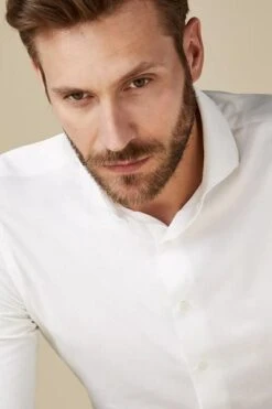 Naast dat het overhemd een tijdloze witte kleur heeft en zeer comfortabel draagt heeft het een Non Iron finish. Na het wassen even uithangen en je kunt hem weer dragen zonder te strijken: ideaal!
