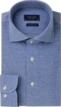 Met de Knitted shirts van Profuomo ervaar je het beste van twee werelden: de stijlvolle uitstraling van een overhemd, gecombineerd met het comfort van een poloshirt. Het katoen is geweven in een pique binding zoals bij een poloshirt, wat ervoor zorgt dat het katoen zowel licht als ademend is en jou voorziet van een erg hoog draagcomfort. Doordat het herenshirt een slanke Slim-Fit pasvorm heeft, die getailleerd om het lichaam valt, ga je zowel comfortabel als met een verzorgde uitstraling op pad.