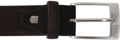 Uw stijlvolle outfit is pas echt compleet met een mooie riem van Profuomo. Kies voor deze fraaie leren riem en geniet van de mooie afwerking en luxe uitstraling. Deze herenriem heeft een Donkerbruine kleur en is voorzien van zilverkleurige details.