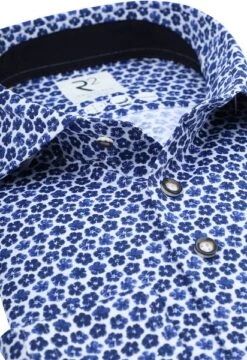 R2 Knitted Piqué Overhemd Bloemen Blauw