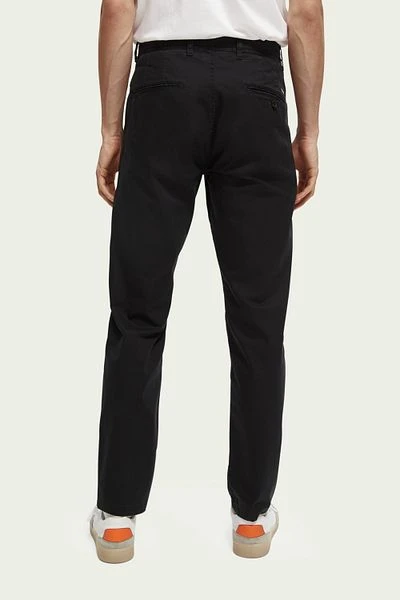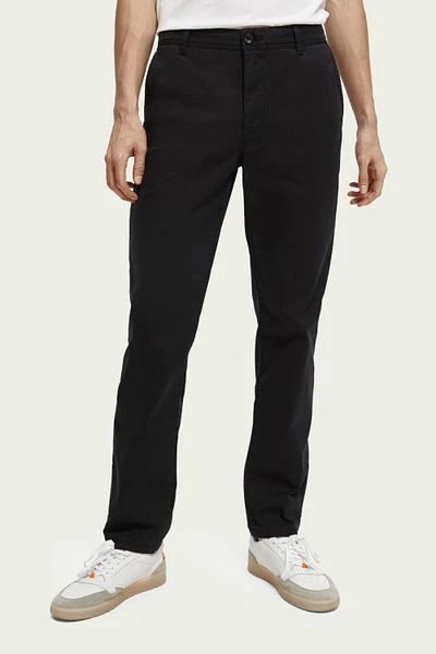 Kies voor een tijdloze broek met optimaal comfort en een duurzaam karakter, met deze Stuart chino. De herenbroek heeft een klassieke zwarte kleur en voorziet je outfit zo van een klassieke look met een herkenbare Scotch & Soda twist. De traditionele chino heeft een rits- en knoopsluiting, twee paspelzakken met knoopsluiting aan de achterzijde en twee steekzakken voor voldoende opbergruimte.