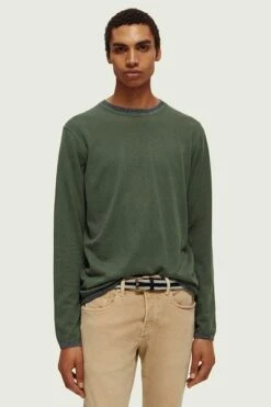 Het Amsterdamse kledingmerk Scotch en Soda is rijk aan details en heeft een uitstekende kwaliteit. Deze trui heeft een Modern-Fit pasvorm die licht getailleerd om je lichaam valt en je zo voorziet van zowel een verzorgde look als voldoende bewegingsruimte. De trui is voorzien van grijs gemeleerde biezen. Daarnaast is de trui gemaakt van katoen en wol waardoor de trui zacht aanvoelt, duurzaam en temperatuurregulerend is.