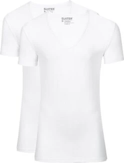 De diepe V-hals geeft je alle vrijheid om het T-shirt van Slater onder een overhemd te dragen. Comfortabel en altijd modern aangesloten.