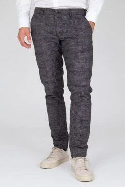 Met de Pico chino van Suitable maak je geheid een stijlvolle indruk. De modern-fit pasvorm zorgt ervoor dat de grijs geruite broek licht getailleerd langs je lichaam valt. Hierdoor is de chino ideaal te combineren met een polo of klassiek overhemd.