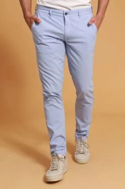 Met de Pico chino van Suitable maak je een stijlvolle indruk. De modern-fit pasvorm zorgt ervoor dat de lichtblauwe geruite broek licht getailleerd langs je lichaam valt. Hierdoor is de chino ideaal te combineren met een polo of klassiek overhemd.