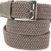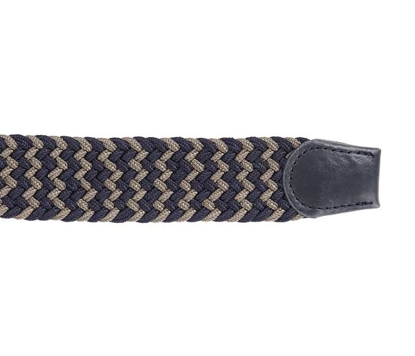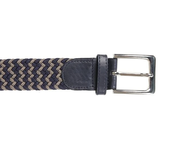 Deze elastische riem met geweven patroon is aan de uiteinde voorzien van een leren stukje. De gesp is zilver gekleurd en heeft een vierkante vorm met mooie rondingen. De breedte van deze riem is 3,5 cm.