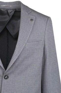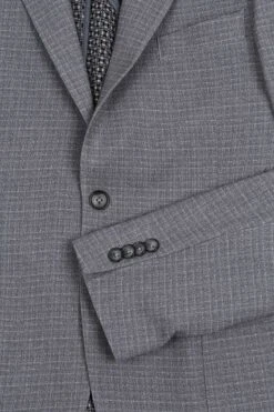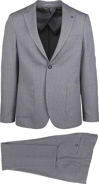 Kom tijdens elke gelegenheid goed voor de dag met dit Jersey kostuum van Suitable. Naast comfortabel en van hoge kwaliteit is het herenpak ook nog bijzonder modieus. Het kostuum heeft een stijlvolle grijze kleur en is voorzien van een subtiel all-over ruiten dessin. Het colbert is afgewerkt met een notched revers, een dubbele split, twee zakken, een borstzak en drie binnenzakken.