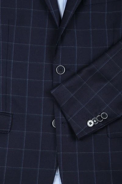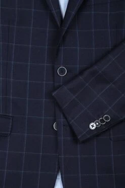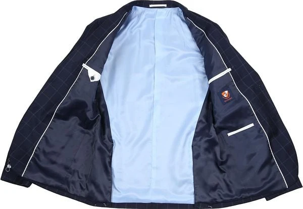 Met dit Strato kostuum van Suitable ga je goed gekleed op pad. De blazer en pantalon hebben een donkerblauwe kleur met een krijtstreep windowpane of ruiten dessin, voor een tijdloze twist. Het stijlvolle pak is gemaakt van 100% wol, gegoten in een getailleerde slim-fit pasvorm die slank langs het lichaam valt. Het single-breasted colbert heeft een peak revers en is afgewerkt met een borstzak, twee klepzakken en drie binnenzakken, wat het Strato model naast stijlvol ook erg praktisch maakt. De bijpassende pantalon is voorzien van een schuifknop, ritssluiting, vier steekzakken en persplooien voor een klassieke uitstraling.