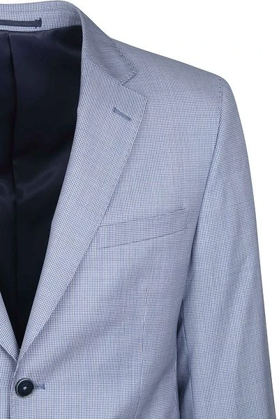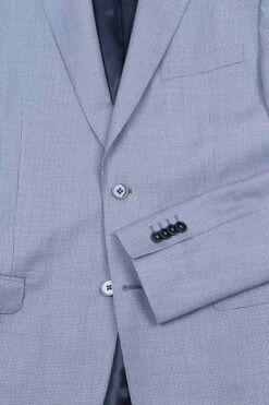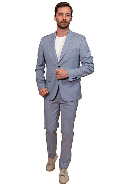 Kom tijdens elke gelegenheid goed voor de dag met dit Toulon kostuum van Suitable. Het kostuum heeft een stijlvolle lichtblauwe kleur in een subtiele pied de poule print en is afgewerkt met een notched revers en een dubbele split.