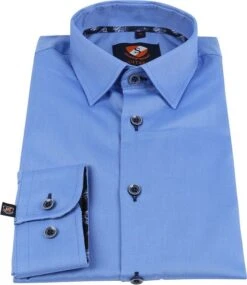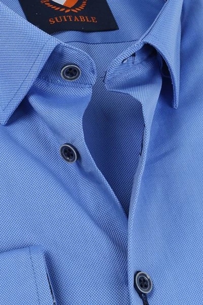 Met dit overhemd van Suitable haal je een casual dress-shirt in huis die je outfit een modische twist geeft. Het herenshirt heeft een stijlvolle blauwe ‘Kobalt Royal’ kleur met subtiel melange in een pique binding, die zorgt voor een trendy uitstraling. Daarnaast is het moderne overhemd voorzien van een button down (HBD) boord, enkele manchetten en bijpassende donkerblauwe knopen.